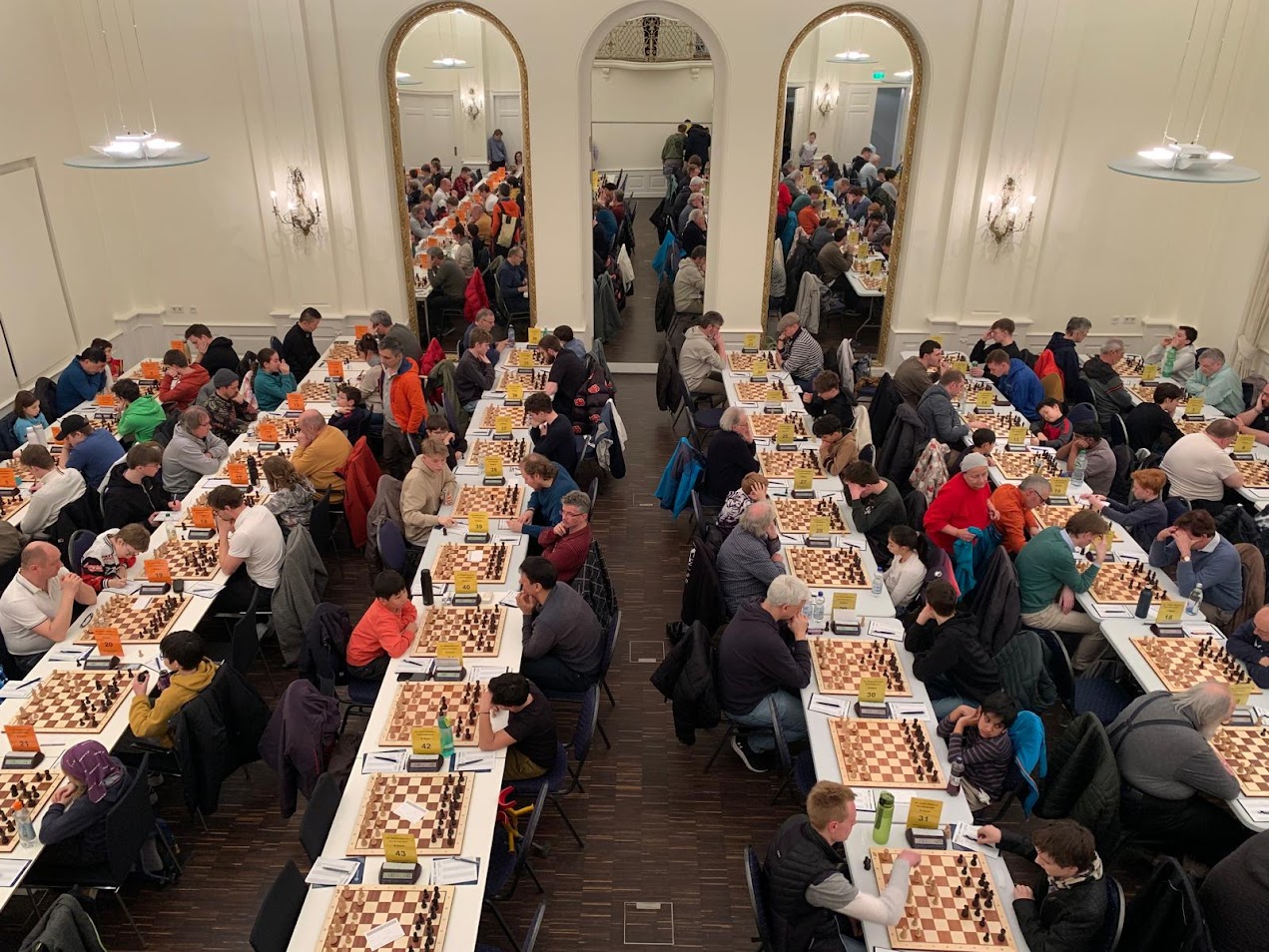 Mit 211 Teilnehmer im A-, B- und C-Open sind die Räumlichkeiten im Kulturhaus LA8 gut gefüllt. Von Freitag, 09.02. bis Dienstag, 13.02. stehen im Kristal- und Spiegelsaal 9 Runden auf dem Programm.